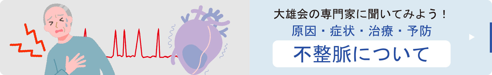 心臓は、全身に血液を送り出すポンプのような役割をします。ポンプを動かしているのは、電気刺激です。まず、右心房にある洞結節が興奮し、電気刺激が心筋全体へと伝わって行きます。不整脈とは、この心臓の興奮が正常に伝わらないことで、脈が不整になることをいいます。
